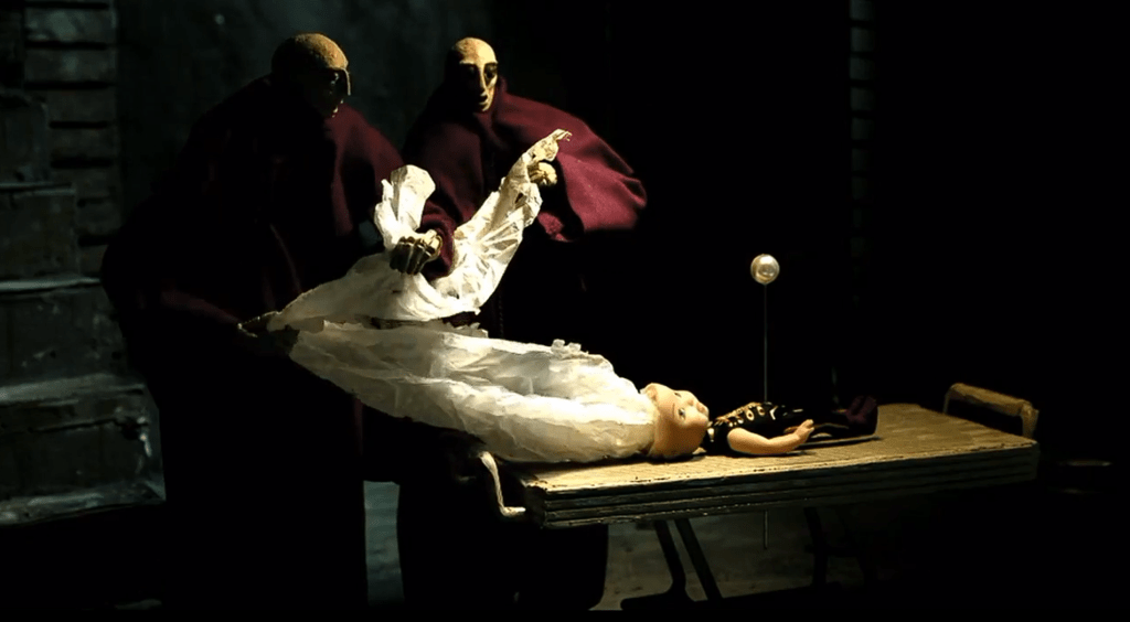 Filmin başında bu gizli mesaj biçimi muhataba (narratee manasında kullanıyorum) iyice belletiliyor. Sonlarına doğru küçük kız tekrar düşüyor ve ameliyat ediliyor. Ameliyat sahnelerini kızın zihninde canlandırdığı şekliyle aracısız olarak görüyoruz. Kızın kafatasına röntgen çekiliyor ardından 4. karedeki gibi kafatası açılıp içinden gizli mesaj biçiminde bir kağıt çıkarılıyor. Muhtemelen çocuk aklıyla röntgen çekildiğinde zihnin okunabileceğine dair bir hayal.
